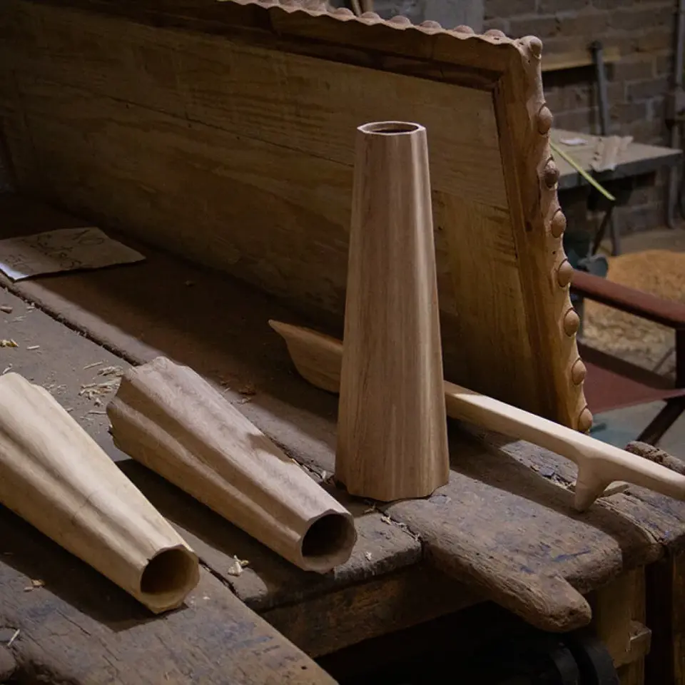 The Folia Collection is a series of sculptural lighting fixtures where nature-inspired forms meet meticulous craftsmanship. Each piece is crafted from solid wood, brass, and cast bronze, blending organic elegance with timeless materials.